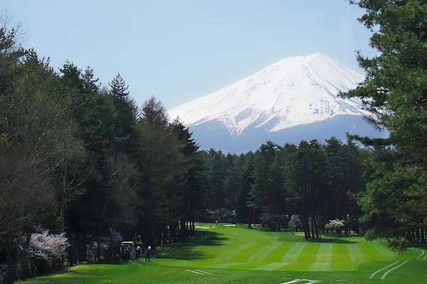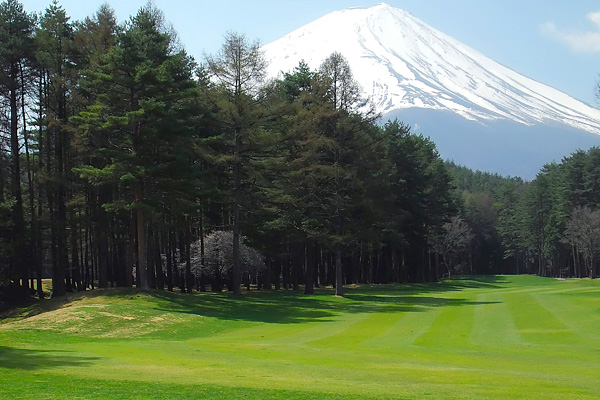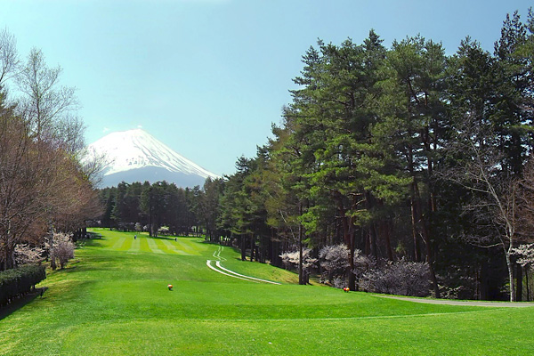 富士山と豊かな樹林に恵まれた標高1,000mの雄大な名門コース。中央道/河口湖ICから約10分と好アクセス。西・東・南の27Hで構成された林間コース。