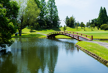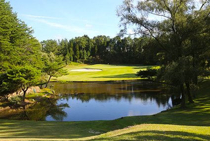 松の木で構成された日本庭園。クラシックなコースレイアウトは日本のゴルフ場の代表と言えるでしょう。 3番のPAR4、11番のPAR3、17番のPAR5など印象に残るホールを多く抱えており、コンペした後は仲間同士で、そのホールでのプレーを振り返る楽しさを演出してくれるのも、コンペ人気の秘訣! グリーン面は、アンジュレーションが少なく、好スコアを全員が狙っていけるので、ベストスコア更新の期待感も高い18ホールです。