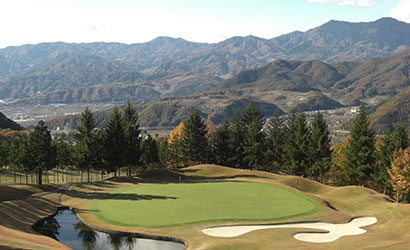 各ホール、アルプス連山を眺めながらプレーすることができる。アウト1番はコース最長のロングホールだが、打ち下ろしなので思い切りティショットを打てる。5番はストレートの長いミドル。グリーン右手前に障害物があり、無理をすると大叩きも。インは10番が打ち上げの右ドッグレッグ。12番・13番ホールとブラインドホールが続くが、両方とも打ちおろしの短いホールなのでバーディを狙える。