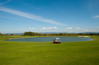 ウォターハザードがチェレンジ精神を掻き立てる〈水〉、壮大なスケールで圧倒する〈光〉、自然の地形を生かし変化に富んだ〈風)。スクラッチプレーヤーからアベレージ、そしてビギナーまで楽しめる3コース!GPSナビ付カートは、コースレイアウト・距離の表示、スコア入力機能&集計・印刷!『リーダーズボード』導入でコンペ参加者のスコアがリアルタイムで確認でき、盛り上がる事間違いなし!気分はもうトーナメント!