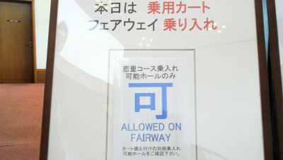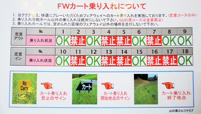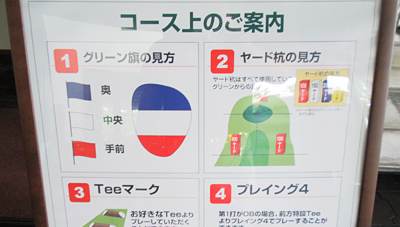 一番のマナー違反はスロープレー。語られて久しいですが、山の原GCさんでは、全面的にプレイヤーのPLAY FASTをバックアップ。旗の色で分かりやすいピンポジション、ヤード表示も随所にあるヤード杭で分かりやすく、フェアウェイ走行OKのホールも一覧で表示されています。PLAY FASTはゴルファーとゴルフ場双方で進めていくという想いが伝わってくる情報提供です。