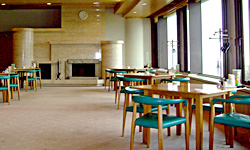 ハウス内に一歩足を踏み入れると、大理石に囲まれた吹き抜けの開放的な空間で出迎えてくれる。セレブ気分を満喫。大理石の階段を2階へ上がり左手はロッカールーム。正面がメインダイニングとなる。ダイニングは南向きの採光を十分に考慮した明るい造りになっている。また、9番18番のグリーンが正面にあるので、コースを見ながら、ゆったりと食事を楽しんでいただく事ができる。