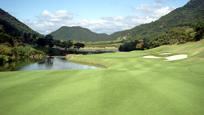 ティグラウンド・セカンド・グリーンなど、どこから見ても美しい18番ホール・Par5。ホールの右サイドに広がる大池、セカンドで越えなければならないクリークなど、それぞれが美しくまた、かつ、戦略性を高めている。
