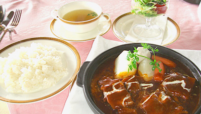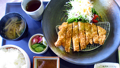 品数が豊富な昼食メニューは本当にどれにしようか迷います。舌の肥えたお客様が普段から多いからでしょう。写真1枚目は「沖縄紅豚のロースカツ定食」ジューシーな柔らか肉に胡麻ダレ、もしくは天然塩がマッチします。2枚目は名物「特選近江日野牛ビーフシチュー」人気です、この柔らかさは絶品!写真3枚目、(これは冬期メニューでしたが・・)「熱々塩ちゃんこ鍋」珍しい塩味ですが、しっかりした味付!他にはない人気メニューがズラリと並び、好評です。
