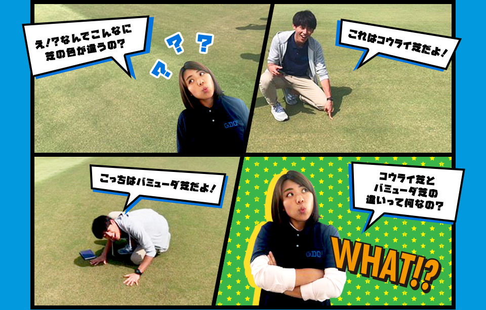 沖縄やさらに南のハワイや東南アジアで使用されることが多く、暑さに強い。うちは、この茎葉が太い芝を、細く綿密なターフに仕上げて、ベントグリーンに負けないグリーンスピードを実現しているよ。
