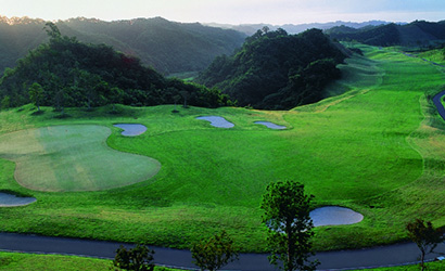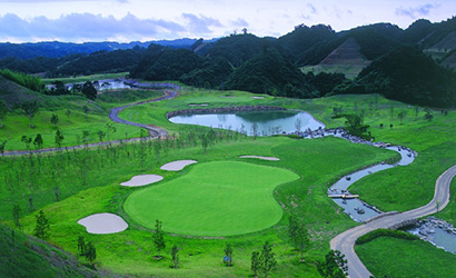 海を望む丘陵地にレイアウトされた27ホールは、松林や大きなマウンドによってセパレートされたなだらかな起伏のフェアウェイと、落ち着きと趣きのあるオーソドックスなつくりながら谷越えや池・バンカーを要所に配置。一筋縄ではいかない戦略性をあわせもつコースとなっております。
