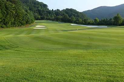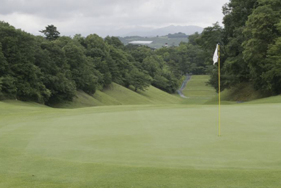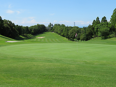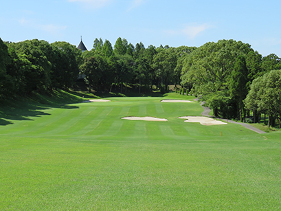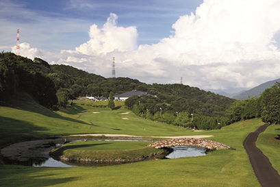 金剛山の麓に位置する18ホールは、松や杉の自然林でセパレートされています。コースレート74.9、総距離は7,200ヤードを越え、全国でも上位の難易度を誇ります。名匠上田治氏が設計。雄大な敷地に飛距離と戦略性を併せ持つコース。フェアウェイが広く、豪快なティーショットが楽しめる反面、アンジュレーションやバンカーを意識した緻密なショットも要求されます。
