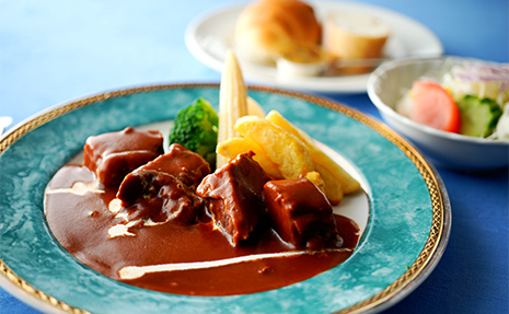 西洋料理の名門「レストランアラスカ」。じっくり煮込んだやわらかいお肉が特徴のビーフシチューは伝統の味。