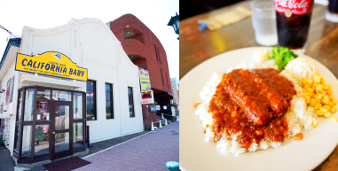函館市内にあるお店。B級グルメの「シスコライス」はご飯にミートソースとソーセージがのっていてボリュームタップリ。(函館市末広町23-15)