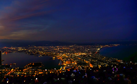 函館観光ではお馴染みの夜景。ゴルフの後は『疲れているからちょっと……』と思いがちだが、この景色には疲れも癒やしてくれるパワーがある。