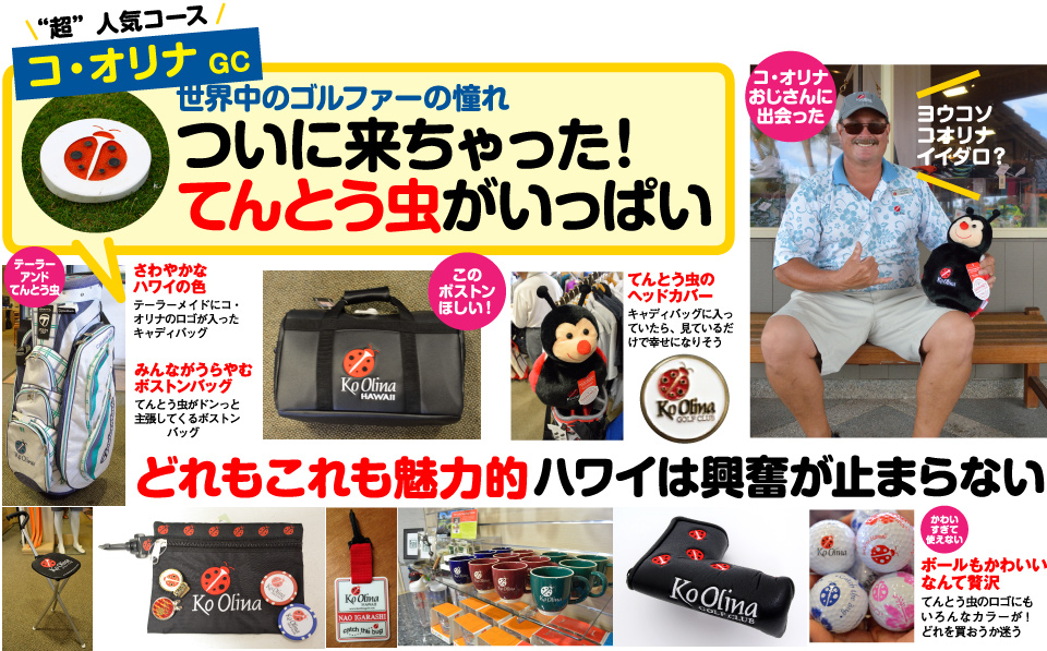 上から下まで、さらに小物まで、てんとう虫で揃えたくなってしまう。生涯に一度はここでプレーしてみたい。