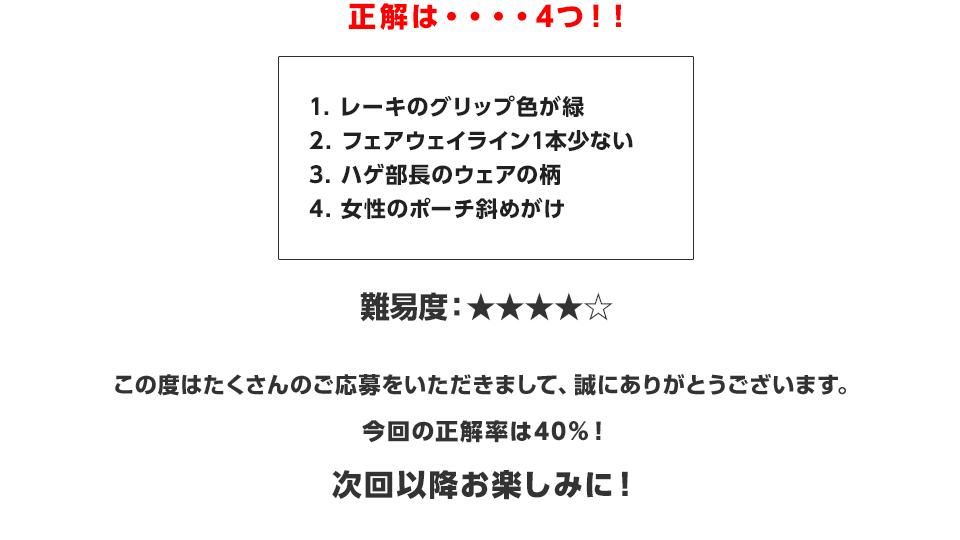 ホーム>ゴルフ場予約>キャンペーン&特集>間違い探し いくつあるかな!?GO GO GOLF♪最大10,000GDOポイントが合計3,000名様に当たるビッグチャンス!1月解答